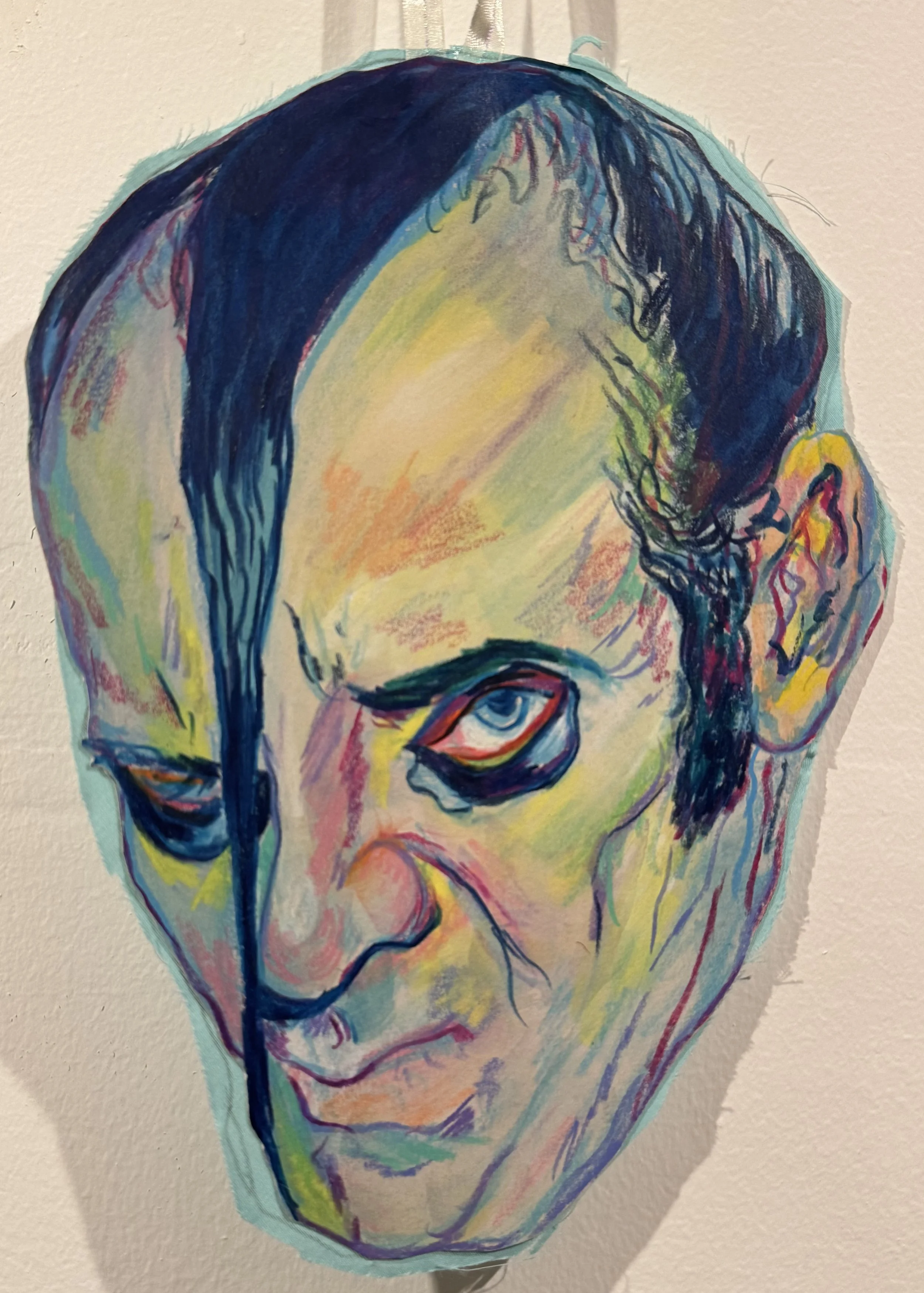 Pastel on Paper. Silkscreen on Fabric with Ribbon