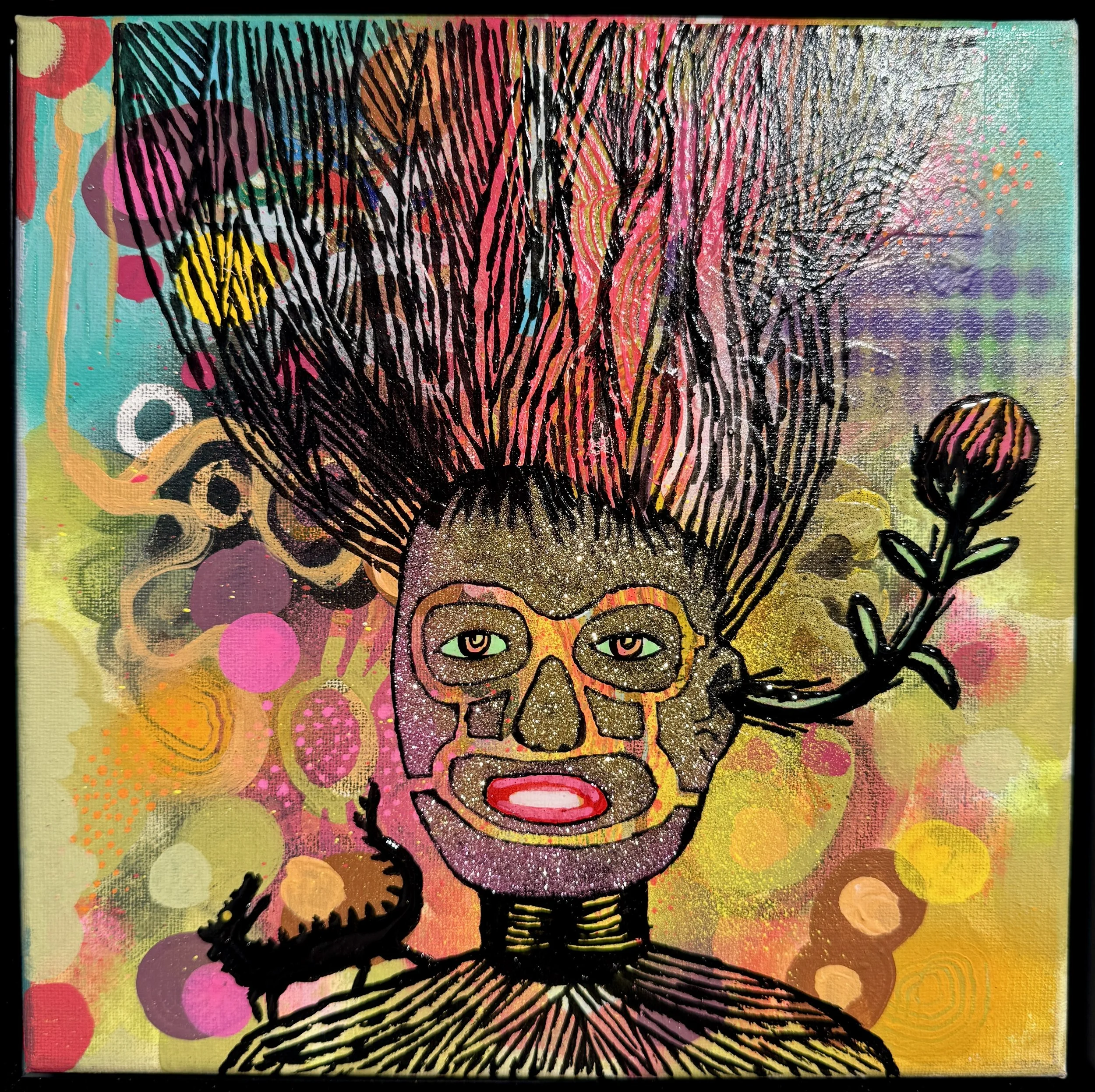 Acrylic, Glitter, Resin, on Canvas