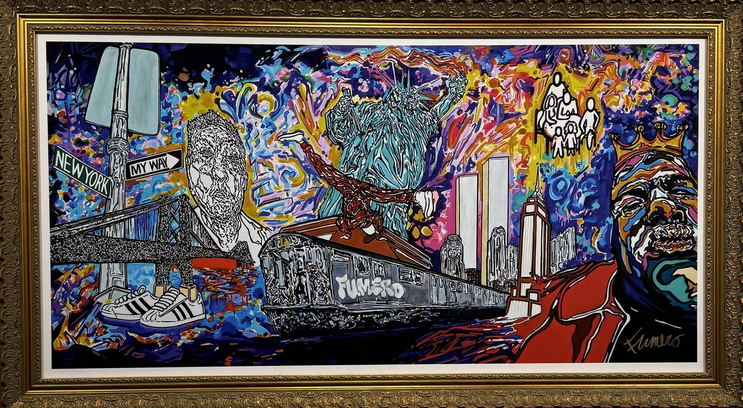 Inspired by his Italian-born grandfather — a World War II US veteran and proud New Yorker — Fumero infuses every piece with narrative and humanity. His work has appeared in galleries across the U.S. and through collaborations with brands such as Absolute Vodka, Dutch Masters Cigars, Blue Man Group, Spike Lee Productions, Black Tap, and Global Street Art (UK) and Starl Land (FN). A fumeroized mural can be seen today on the casino floor inside the Venetian Hotel, Las Vegas, NV.