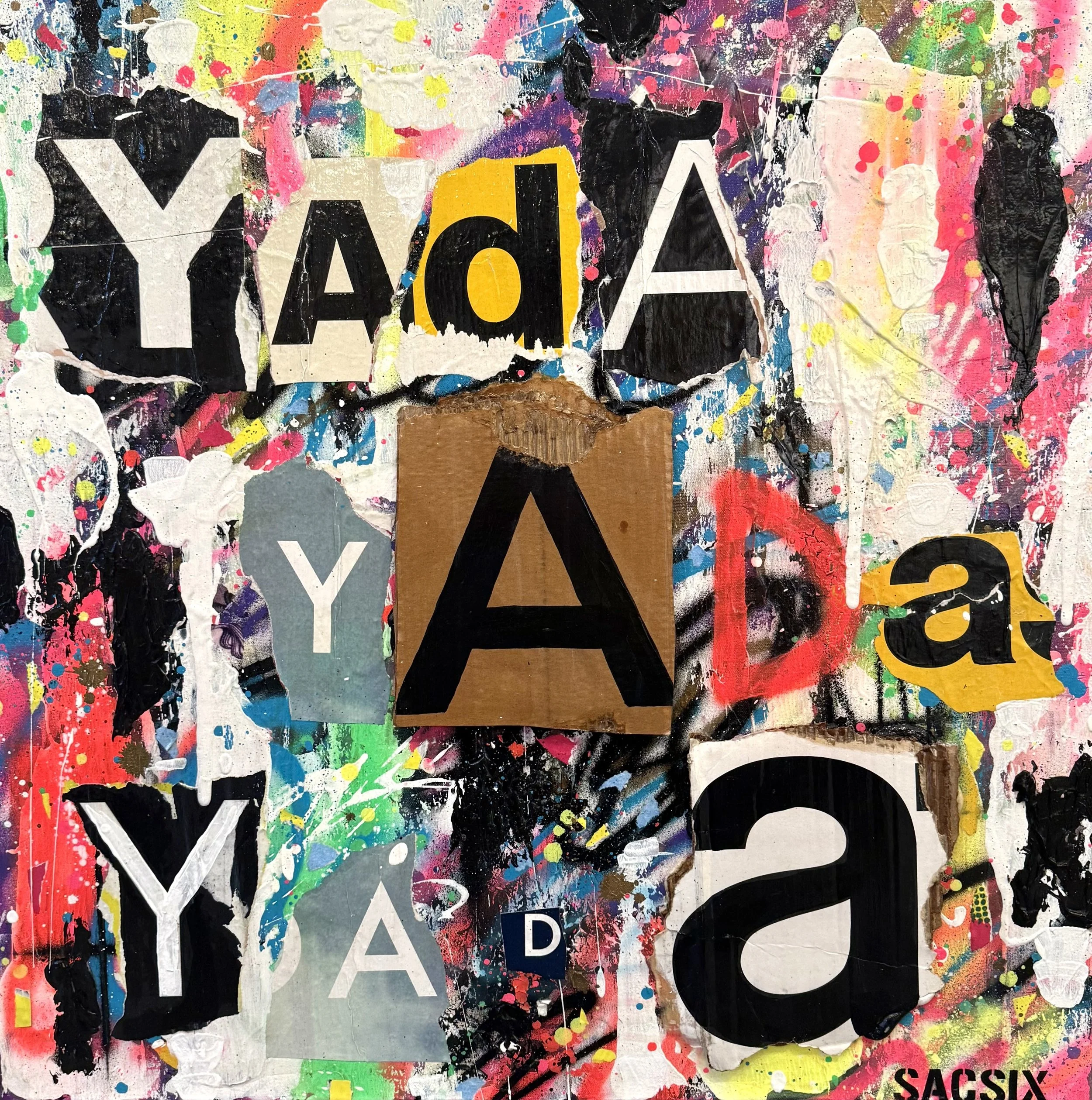 Spray Paint, Acrylic, Torn Ads on Canvas